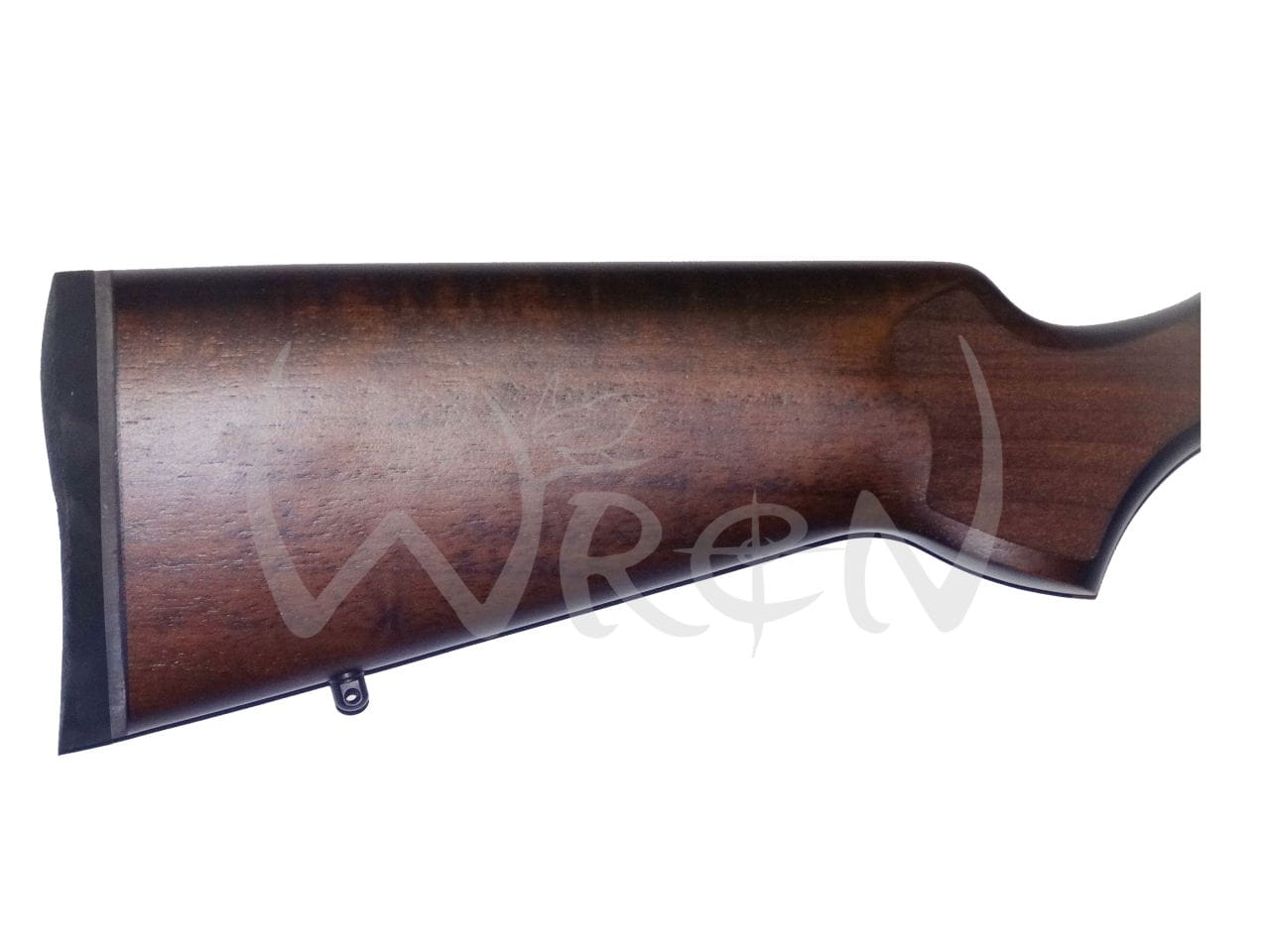 W karabinku CZ 457 Varmint zastosowywano orzechową osadę w stylu amerykańskim z antypoślizgowym radełkowaniem naniesionym na profilowany chwyt pistoletowy oraz przednią część łoża.
